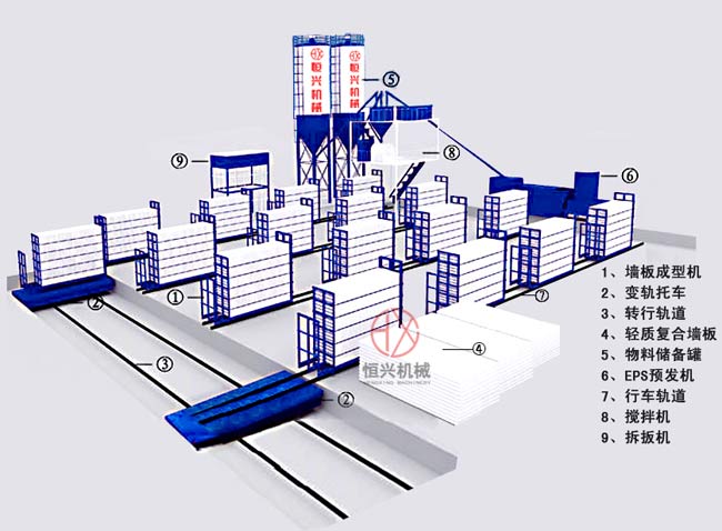 恒興立(li)式輕質牆闆(pǎn)生産線布局(jú)圖