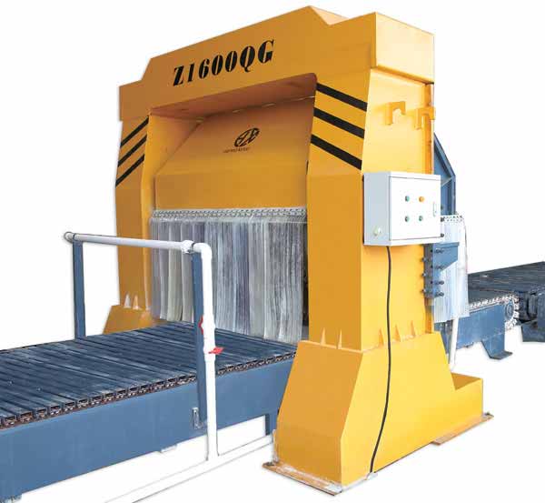 2次切割,切割後自(zi)動輸送至成品機(jī)械手,進行成品碼(ma)垛,後送至😄堆場進(jìn)行自然養護